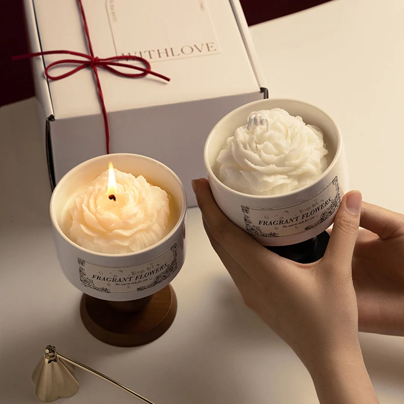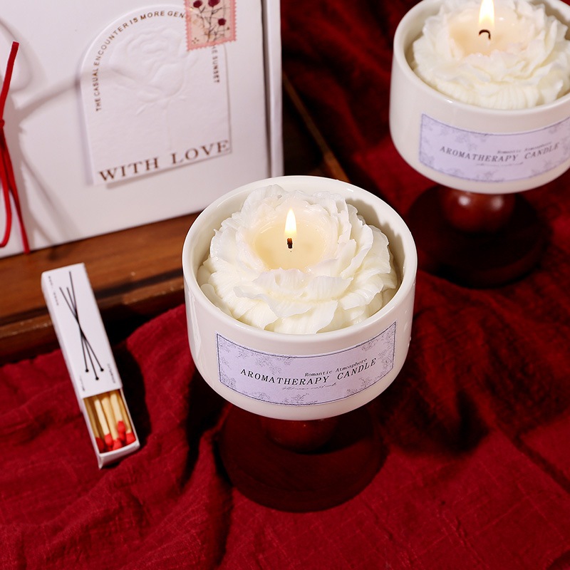 Hộp quà nến thơm hình hoa quà tặng kèm đế gỗ KILIG GLEAM 4 mùi hương không khói dễ chịu - KS06